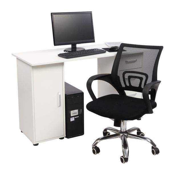 Escritorio para Computadora Blanco de Una Puerta y Cuatro Cajones