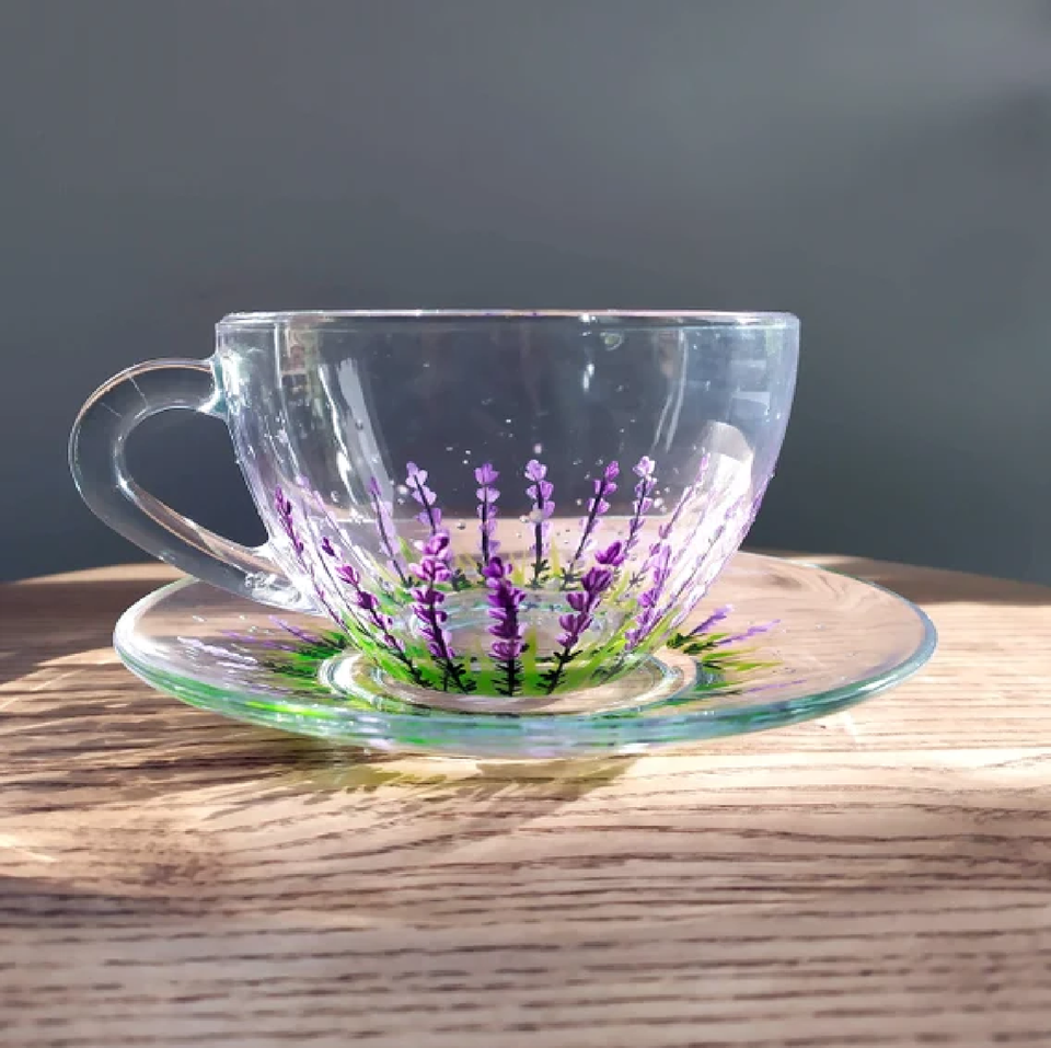 Taza y platillo de té de vidrio