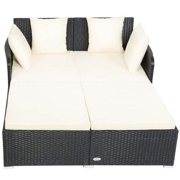 Sofá Cama de Ratán Blanco para Exteriores con Cojines Acolchados Cómodos para Jardín