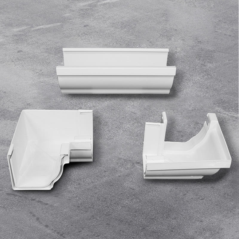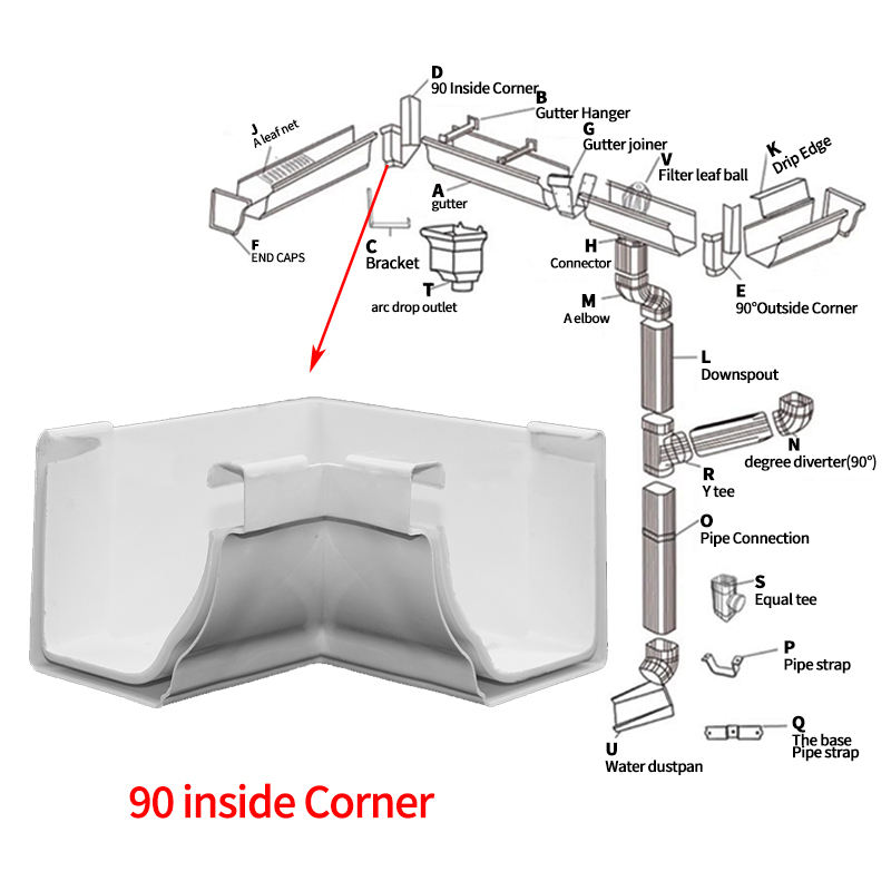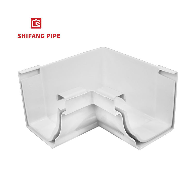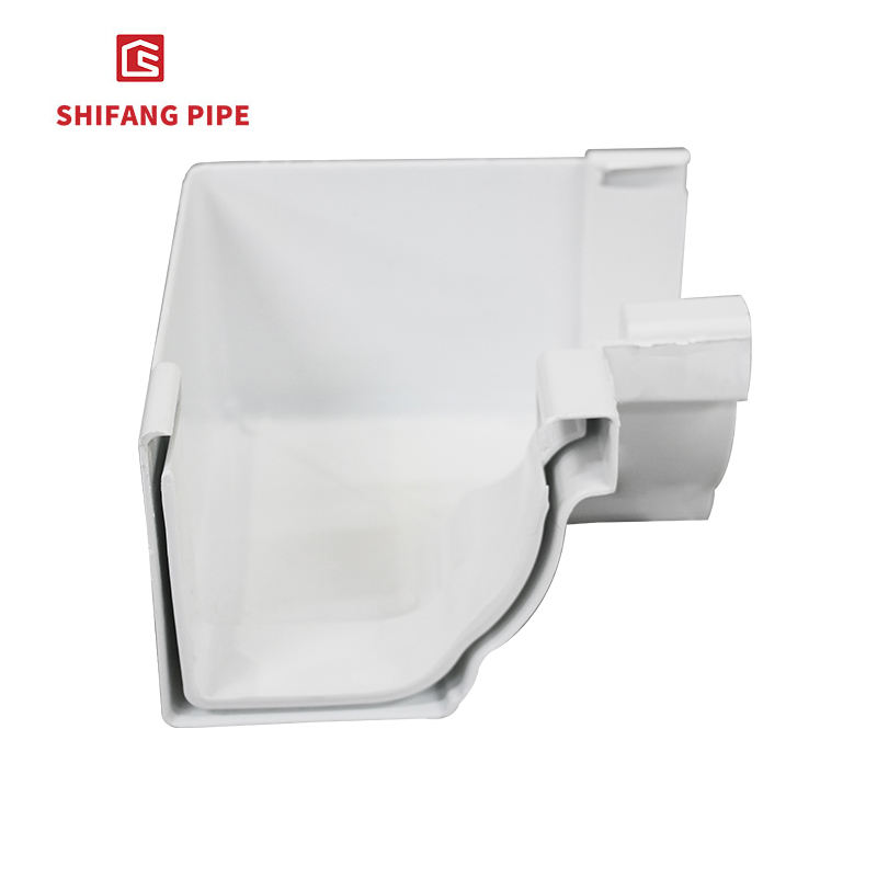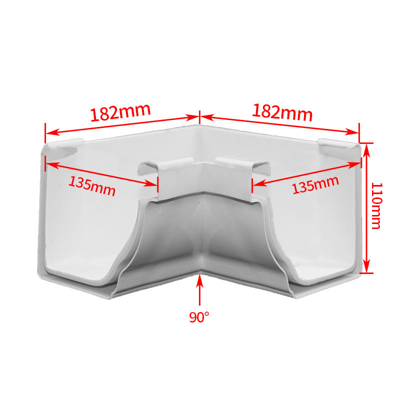 PVC blanco 5,2 pulgadas 90 grados esquina interior para sistema de canaletas drenaje de agua de lluvia