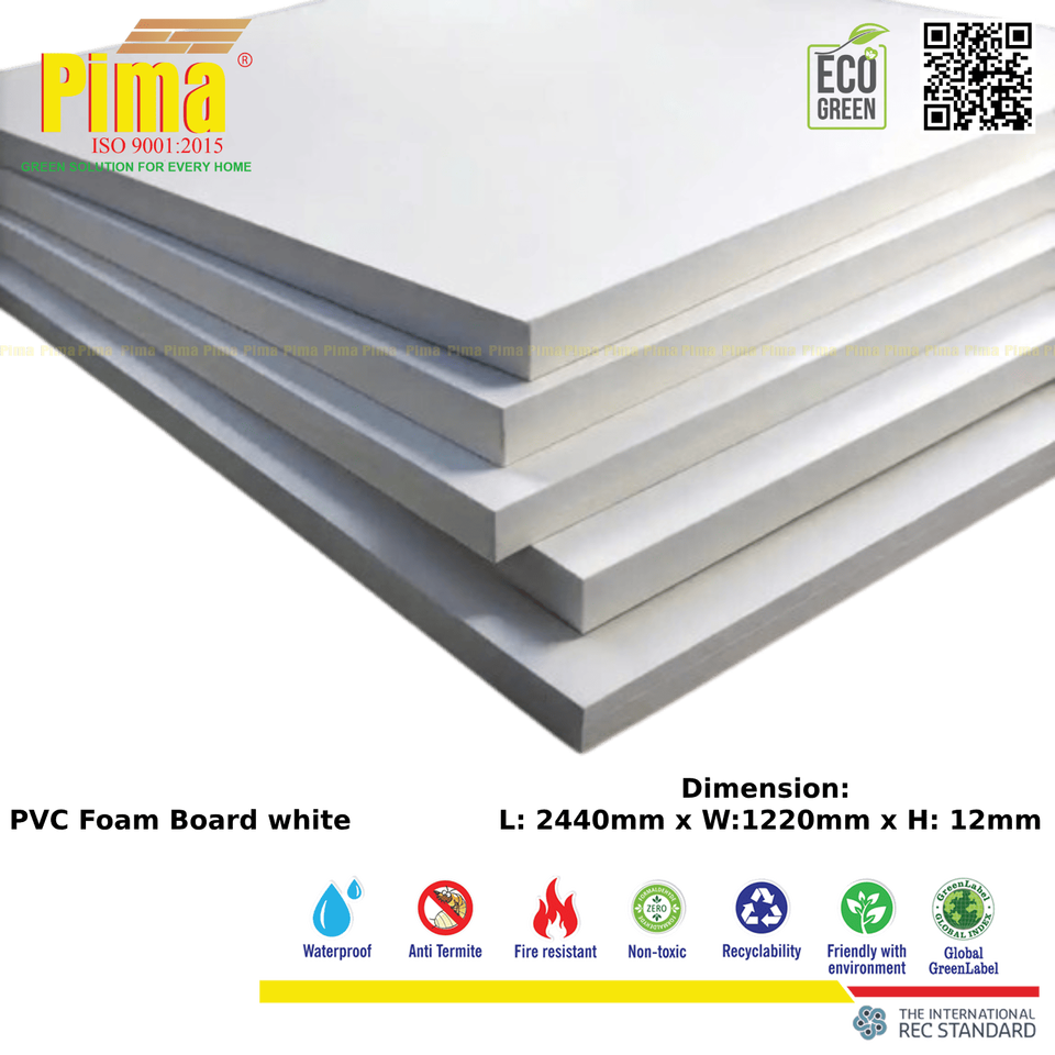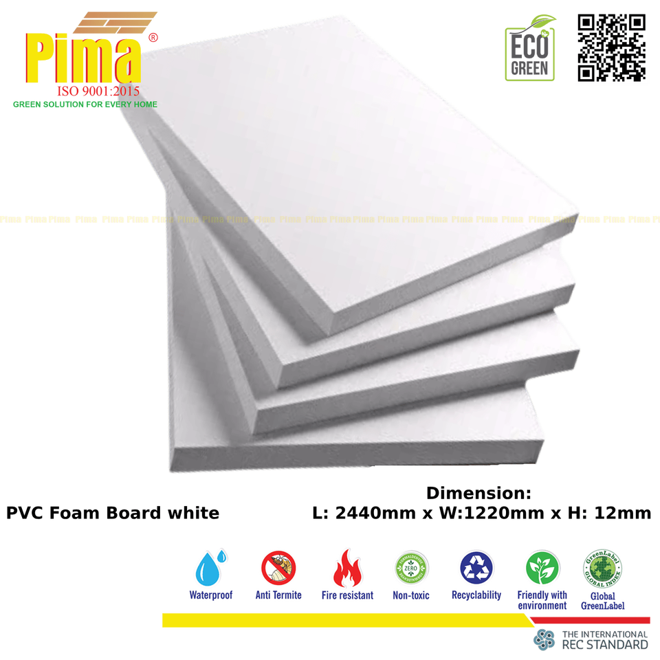 Paneles de polivinilo impermeables de PVC y WPC blancos, tablero de espuma de densidad de 12mm de espesor de 0,6G/cm3 para muebles y gabinetes interiores