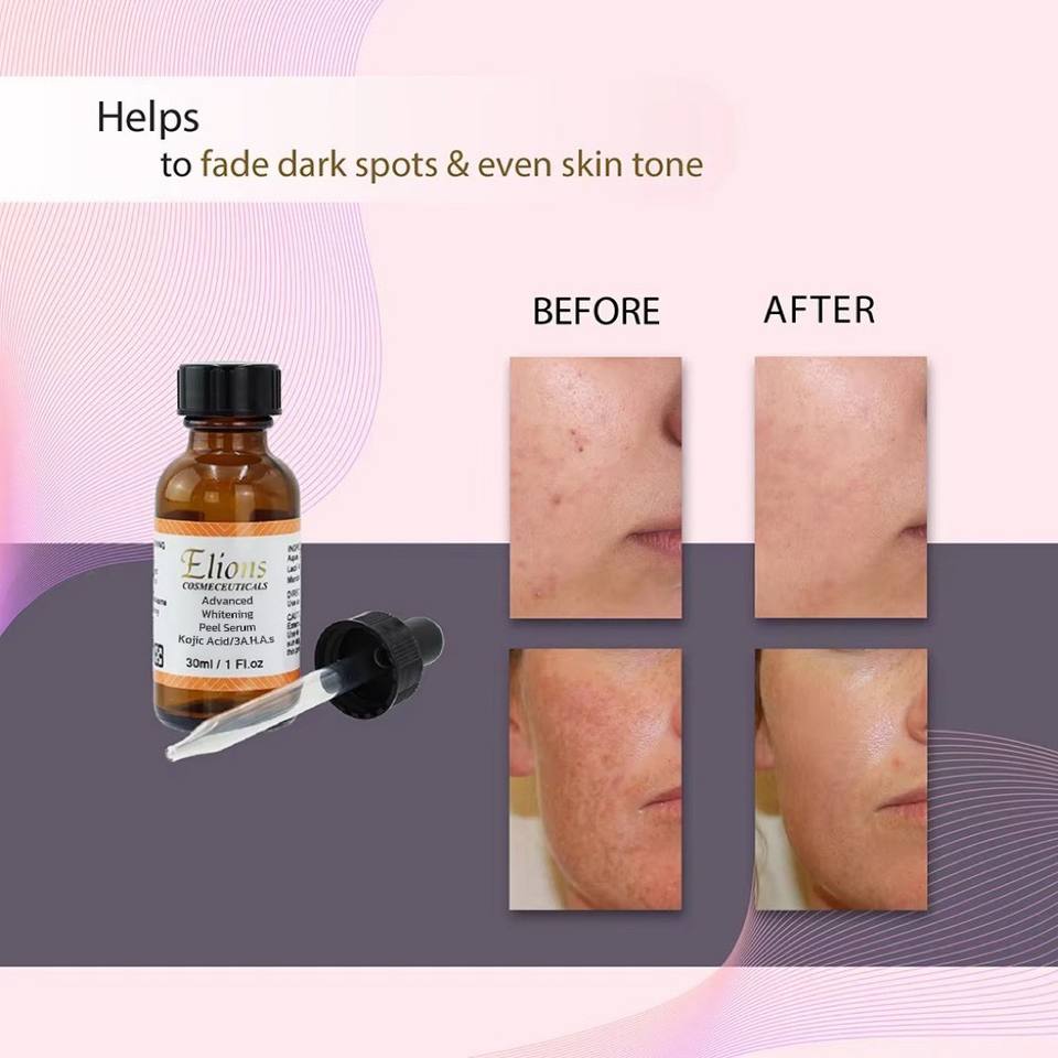 White Peel 3 Tipo A.H.A Ácido de almendras Leche Ácido de caña de azúcar y Ácido Kójico para eliminar manchas oscuras Blanqueamiento DE LA PIEL Suero Peeling