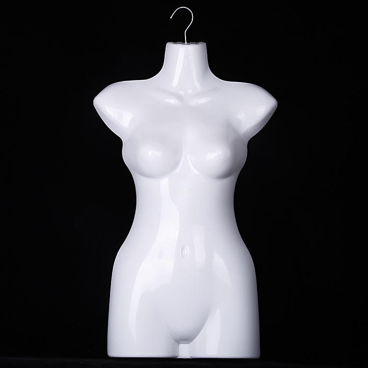 Maniquí de plástico blanco con forma de medio cuerpo, Torso femenino hueco, modelo de ropa colgante con gancho para traje de baño, venta de exhibición de ventana