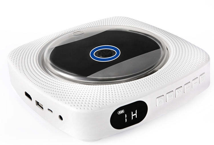 Reproductor de CD Portátil Blanco con Bluetooth, Recargable, Dispositivo de Audio HiFi para Uso en Interiores y Exteriores, con Puerto USB y Conector para Auriculares