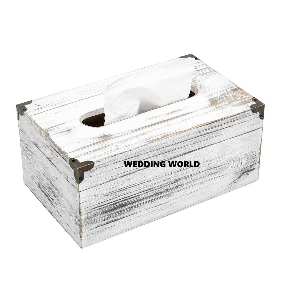 Caja de pañuelos de madera con revestimiento de polvo blanco negro, caja de pañuelos de madera con sombra, clásica, elegante, hecha a mano, superventas, caja de pañuelos de madera al por mayor