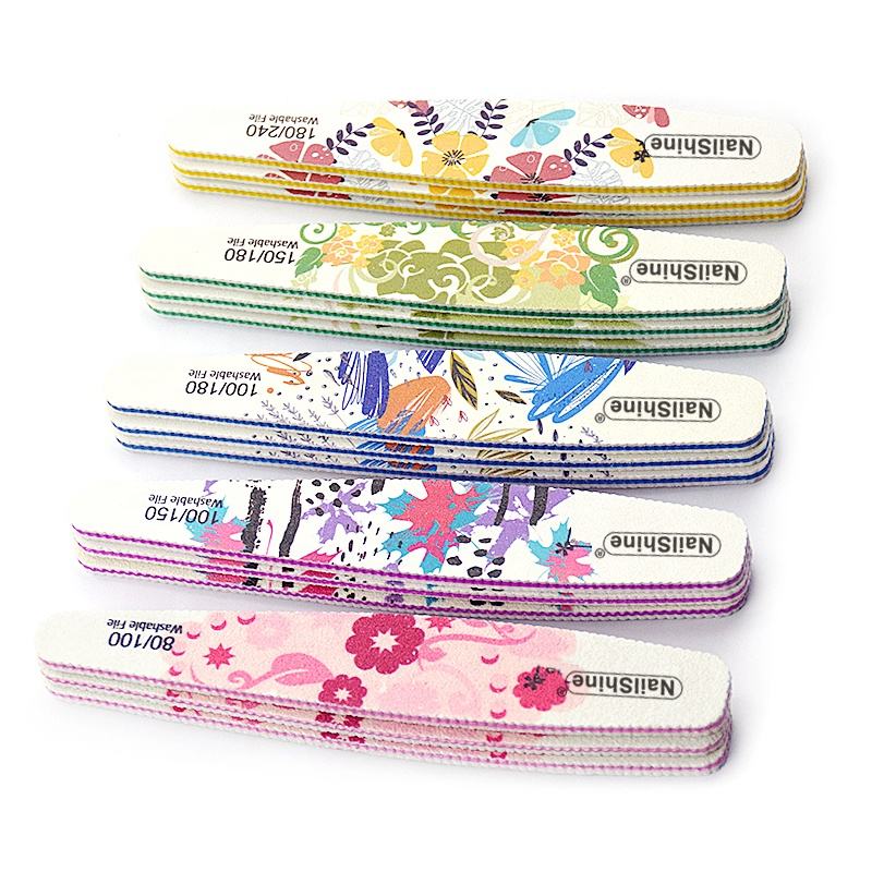 Lima profesional blanca Lima de manicura lavable Papel de lija Lima bidireccional Patrón impreso blanco Flor Lima