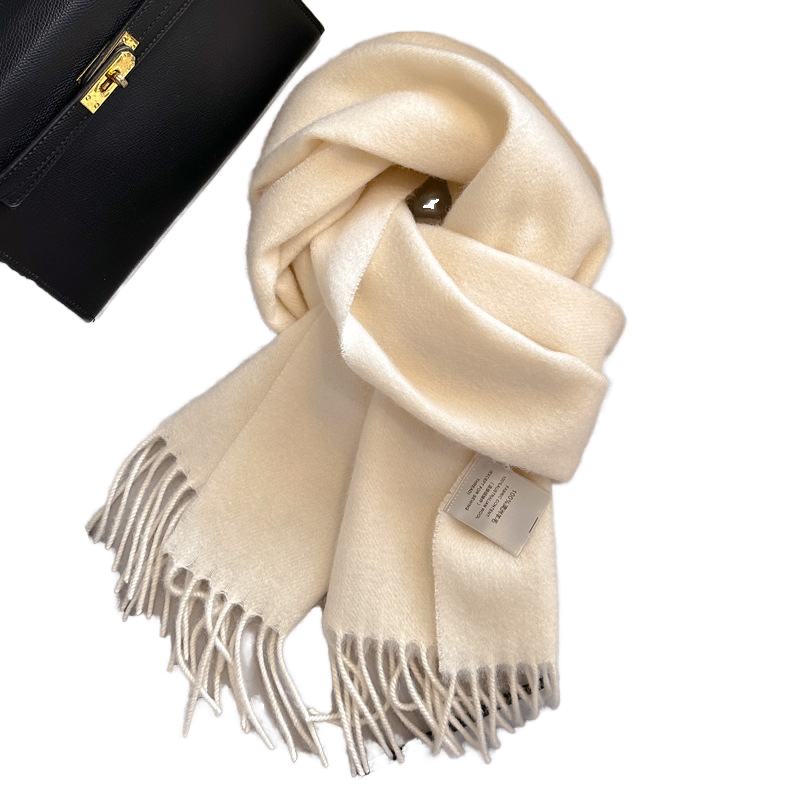 Bufanda Larga de Lana Pura Blanca Transpirable para Mujer, Ideal para Invierno, Estudiantes, Novedad, Combinable con Todo, con Borlas, Regalo para Parejas, Actividades al Aire Libre