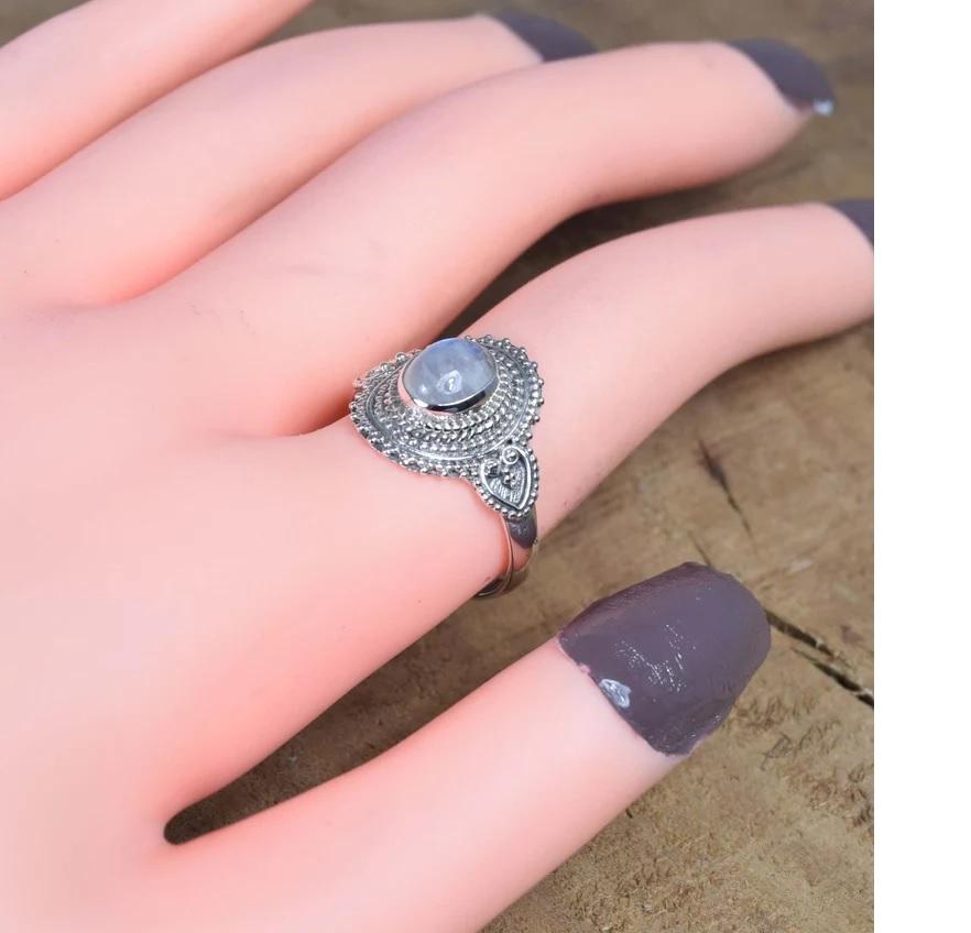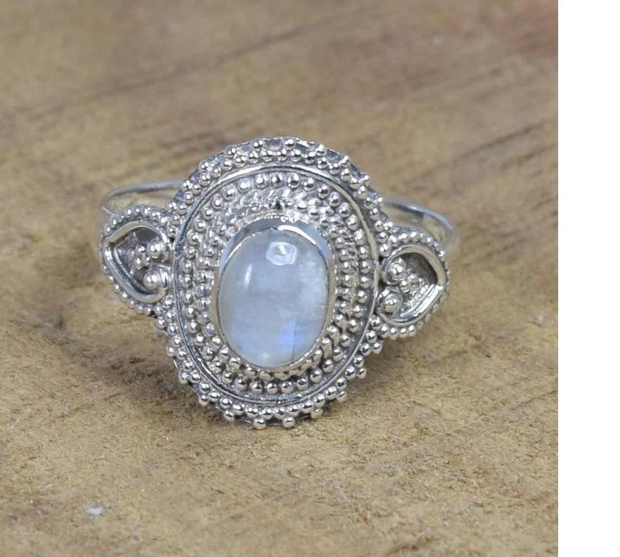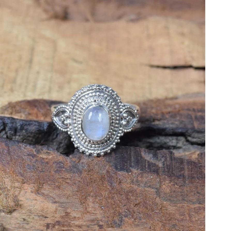 Nombre:Moonstone Gemstone Anillo de forma ovalada