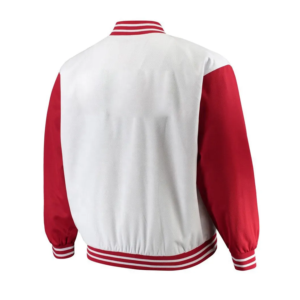 Chaquetas Varsity de Béisbol Vintage para Hombre, Blancas y Rojas, con Cuello Alto, Ecológicas, Transpirables, Resistentes al Viento, con Forro Polar Grueso para Invierno
