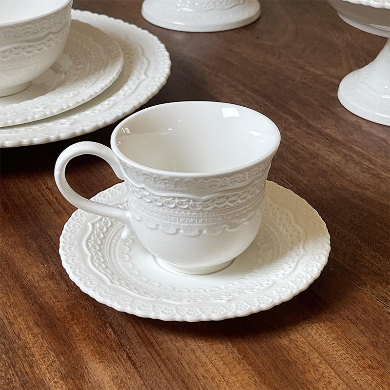 Platos de cena de cerámica en relieve blanco, vajilla de sopa de porcelana en relieve francés, vajilla de cerámica de lujo