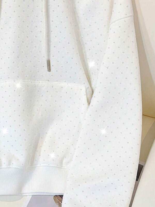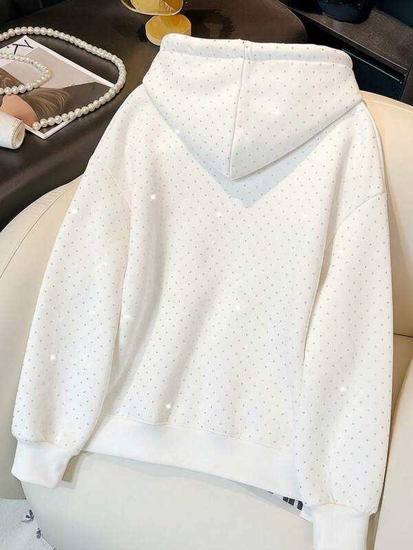 Sudadera con Capucha para Hombre, con Detalles de Pedrería Blanca, de Algodón Grueso y Felpa, Corte Holgado, Hombros Caídos, Estilo Urbano, Diseño Limpio