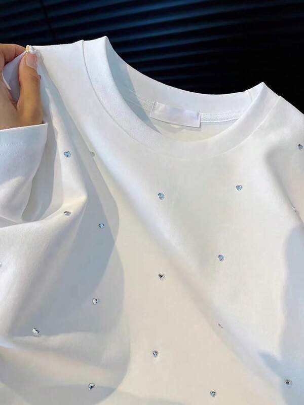 Blanco strass letra larga logotipo personalizado impresión Bling Hip Hop Streetwear Oversized Boxy Heavyweight 100% algodón camisetas de los hombres