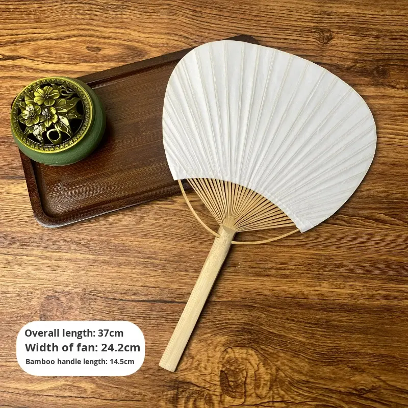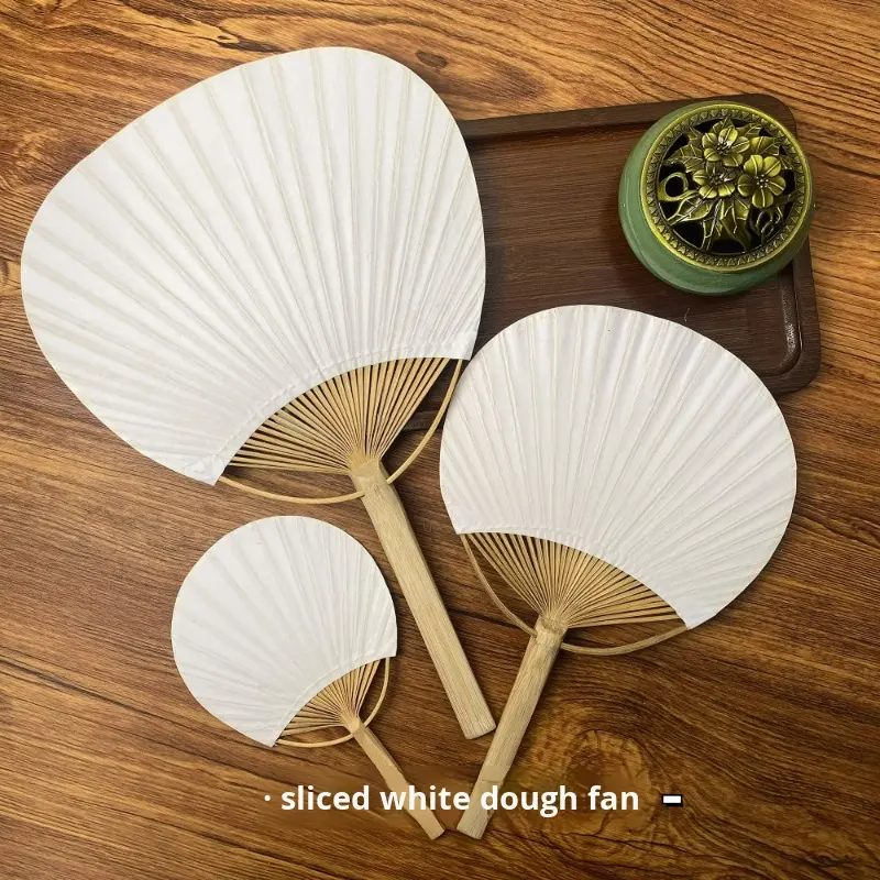 Abanicos Redondos Blancos con Marco y Asa de Bambú, Recuerdos para Bodas y Fiestas, Regalos, Abanicos de Papel