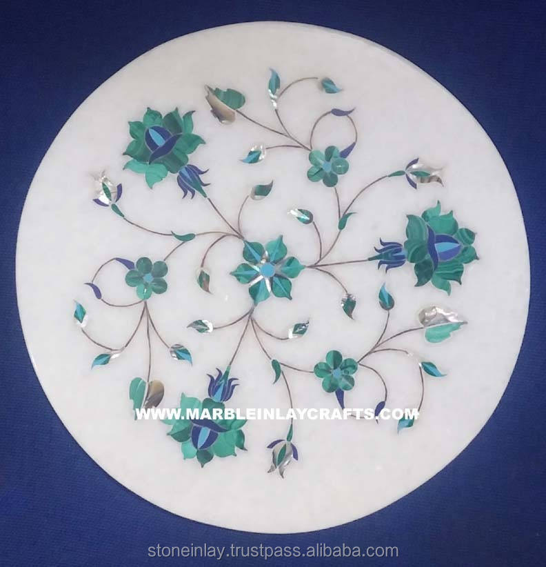 Placa con incrustación de piedra semipreciosa, redonda, blanca