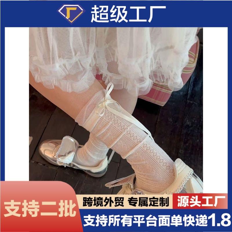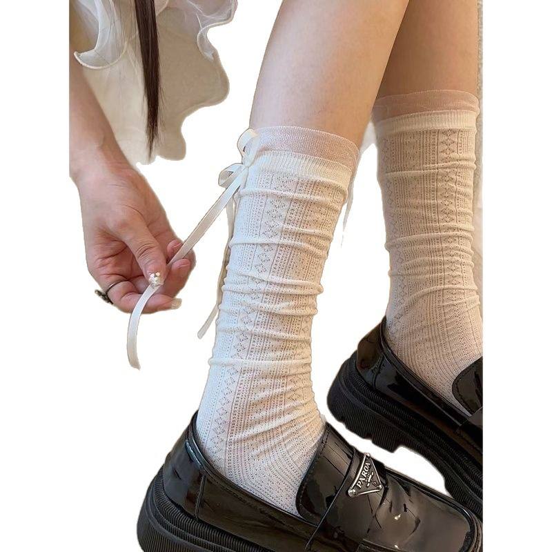 Calcetines blancos transparentes con diseño de nudo de lazo y diseño hueco en la pantorrilla para mujer, absorbentes del sudor, resistentes al olor, de fibra de poliéster