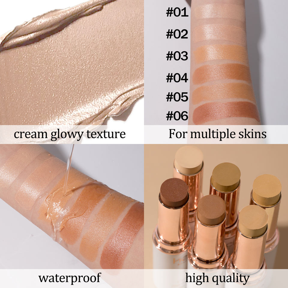 Base de Maquillaje en Barra Blanca Brillante y Cremosa, Cobertura Total, Resistente al Agua, 6 Tonos, Base de Maquillaje Vegana que Cubre Imperfecciones