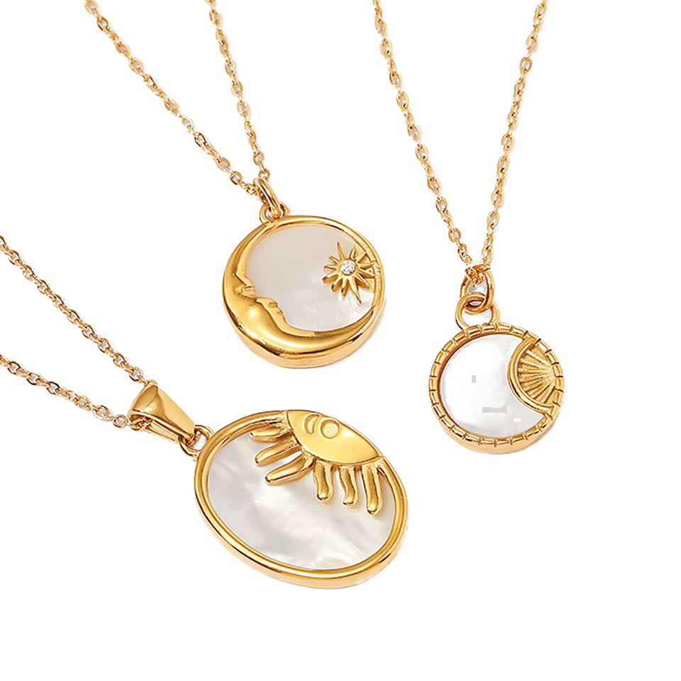 Collar con Colgante de Sol y Luna en Concha Blanca, Cadena de Eslabones Vintage, Chapado en Oro de 18K, Acero Inoxidable, Regalo