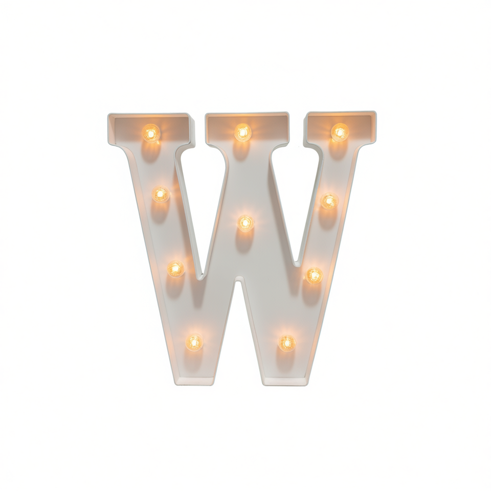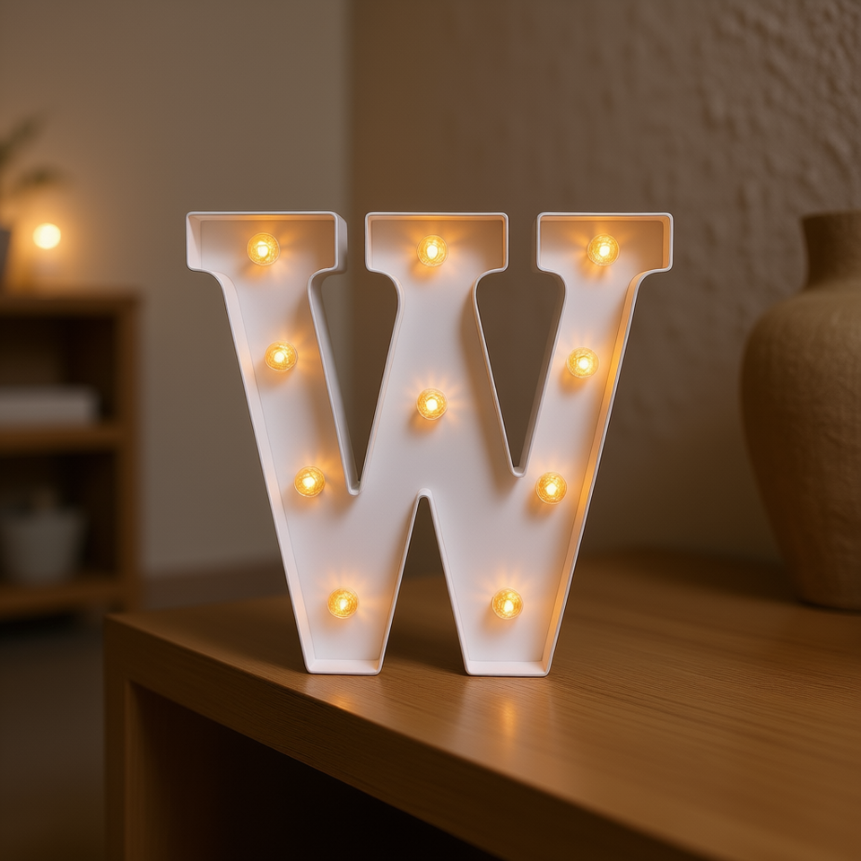 Adorno con Letra W en Color Blanco Cálido, Elegante Placa Decorativa de 21 cm, Decoración de Plástico para Cumpleaños