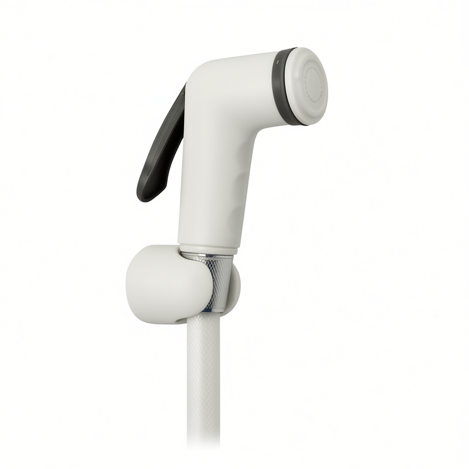 Cabezal de ducha blanco con manguera de 18,8 cm de longitud para uso en el baño