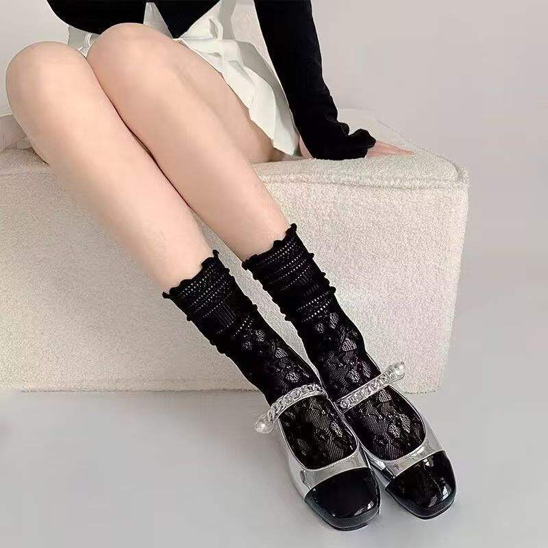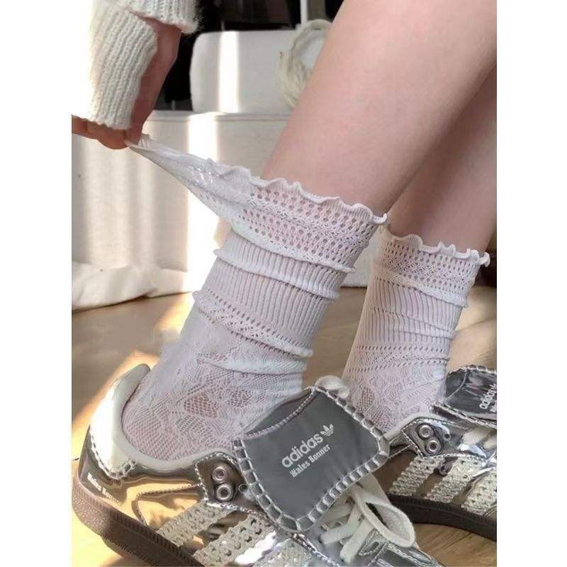 Calcetines Blancos Holgados hasta la Pantorrilla, de Algodón Absorbente de Sudor, para Mujer, con Ribete de Encaje