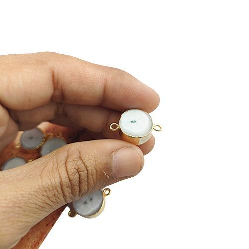 Conector de cuarzo solar blanco, cobre dorado, galvanizado, fabricación de joyas Diy, componentes de piedras preciosas, suministros de eslabones colgantes de piedra blanca
