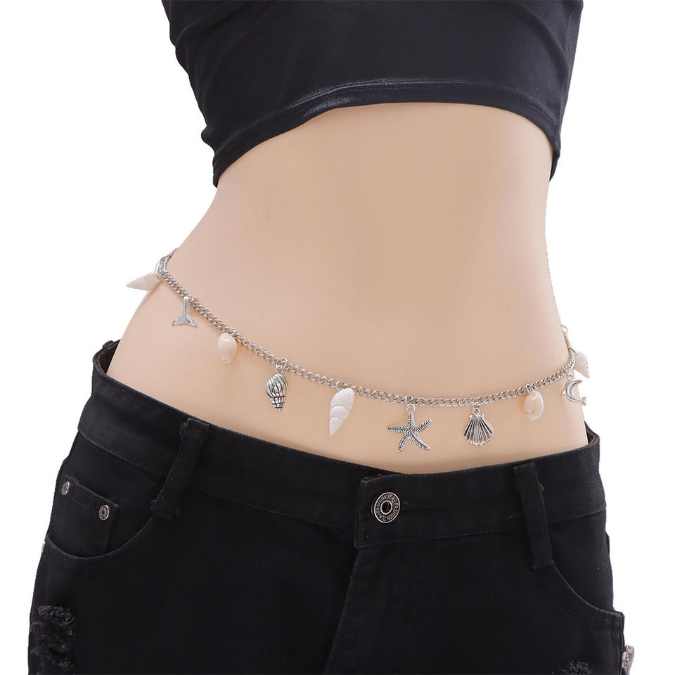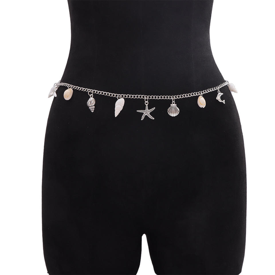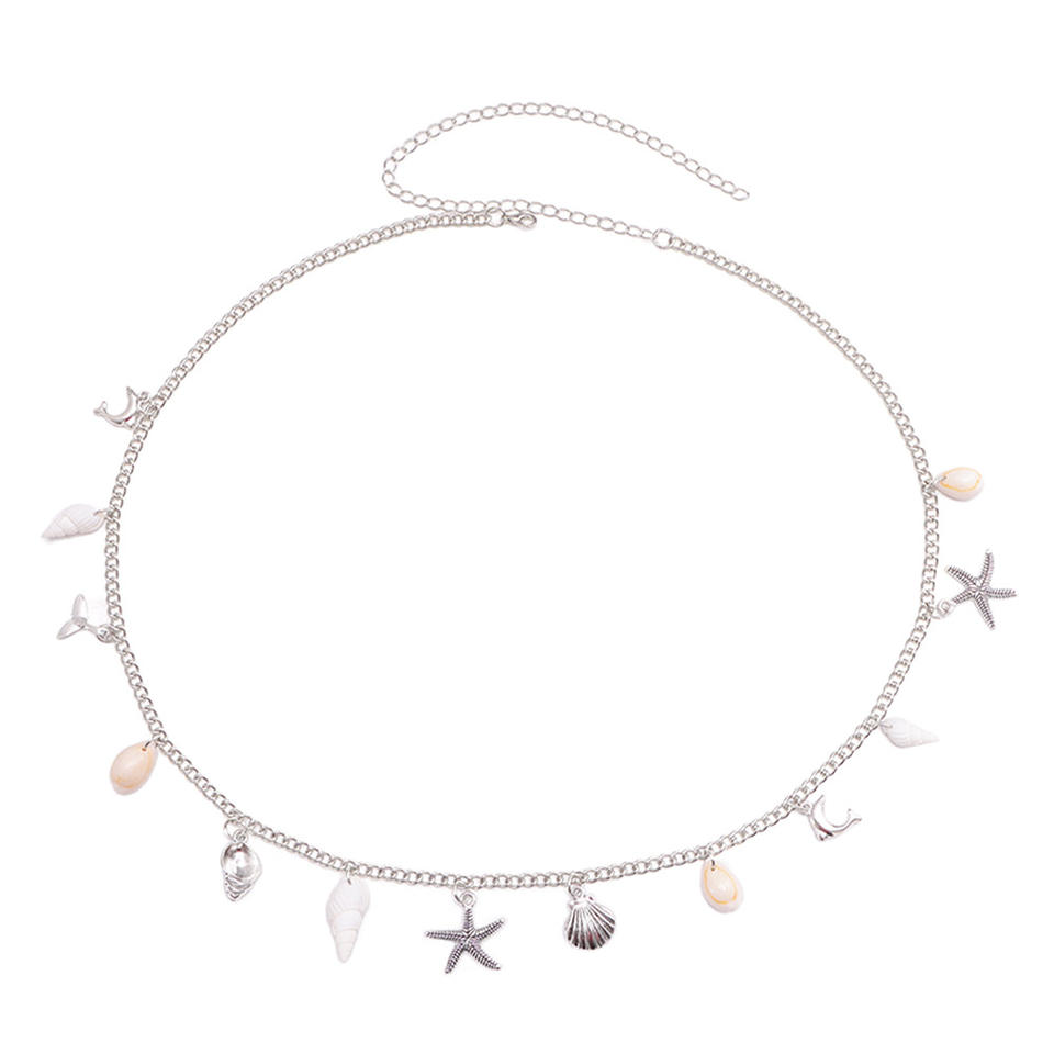 Cadena de cintura con colgante de concha de estrella de mar blanca, perlas de imitación, accesorio para fiesta en la playa, estilo bohemio, de una sola vuelta