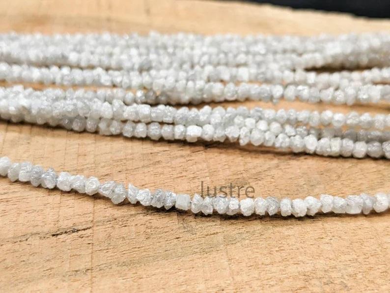 Piedras Blancas en Bruto, Sin Cortar, Forma de Cuentas, Marca LUSTRE, Certificadas por Terceros, Hechas a Mano, Joyería Natural Blanca India