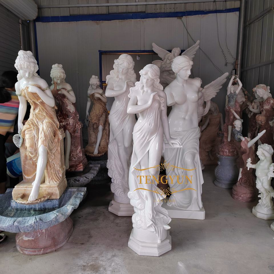 Nombre:Escultura blanca sexy desnuda dama desnuda jardín Estatua de la diosa de mármol