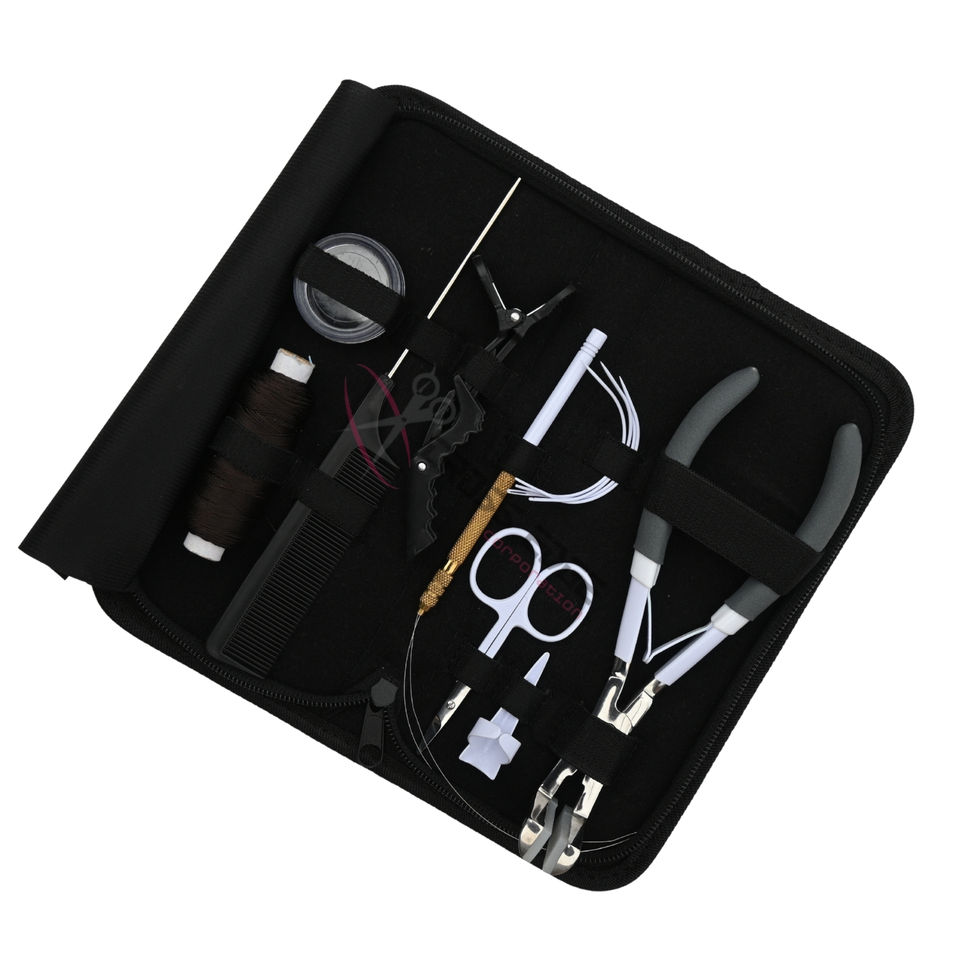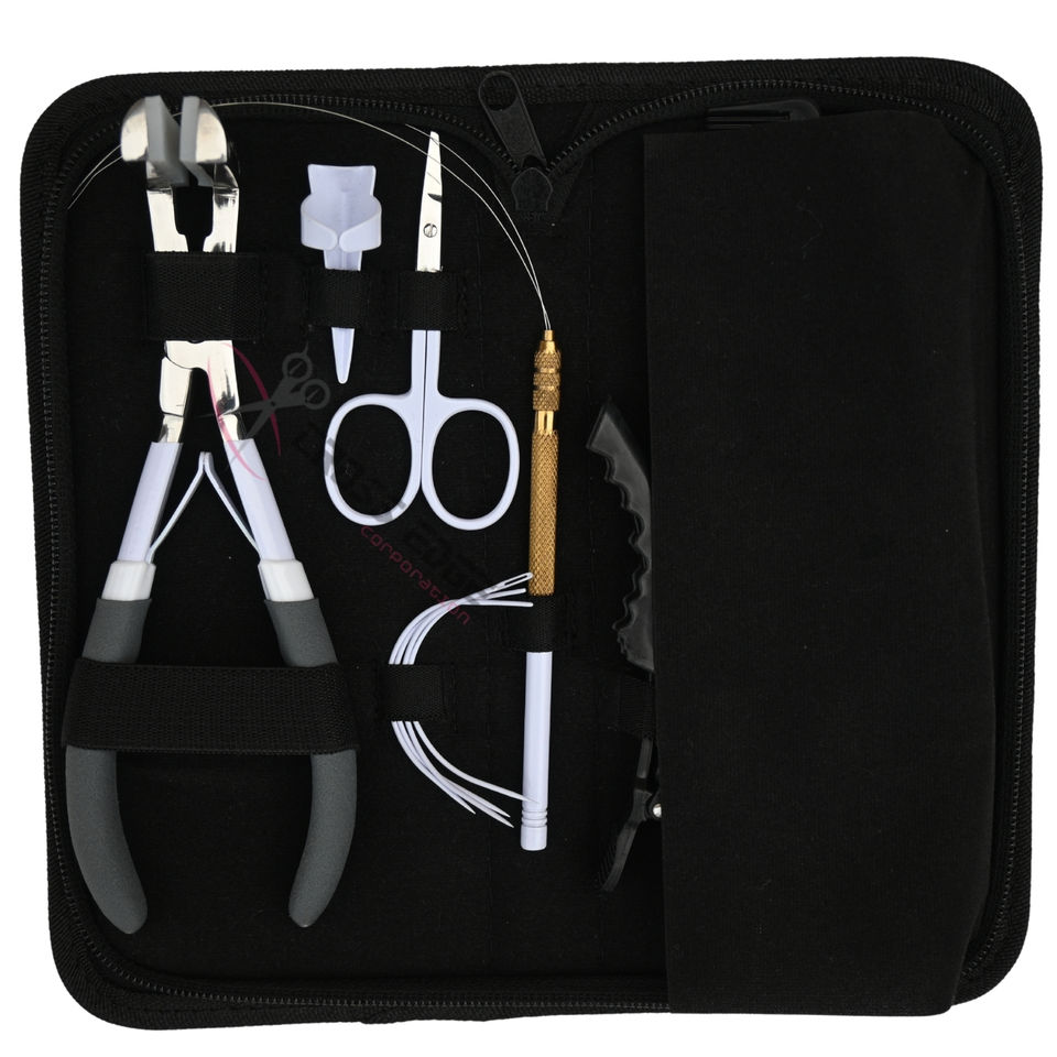Cómodo kit de herramientas para extensiones de cabello blanco