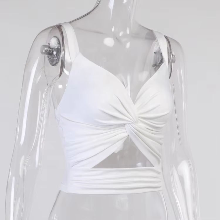 Blanco Verano Cuello en V Profundo Diseño Hueco Ombligo Chaleco Top Mujer Moda Sexy Crop Top
