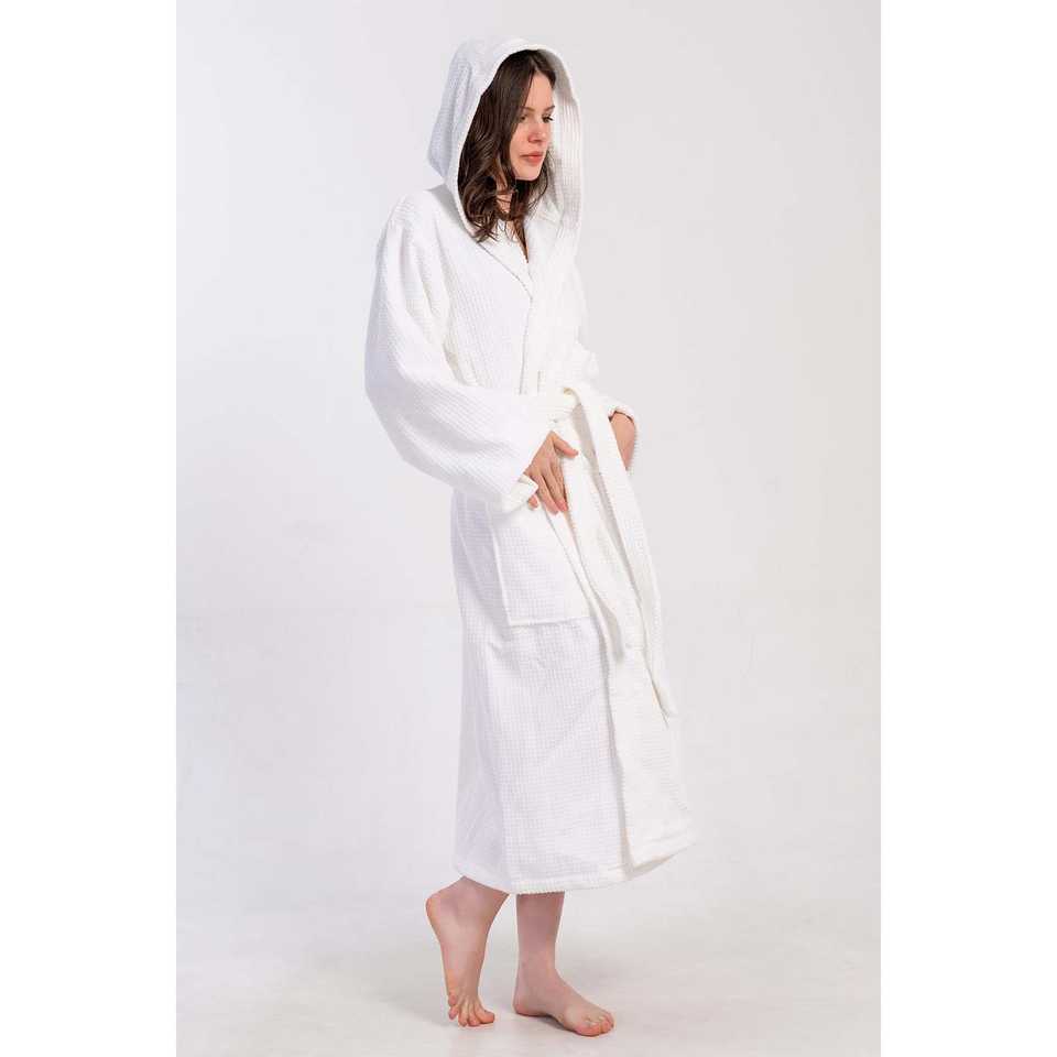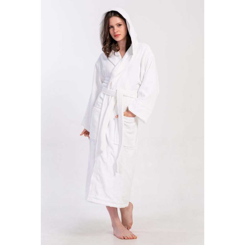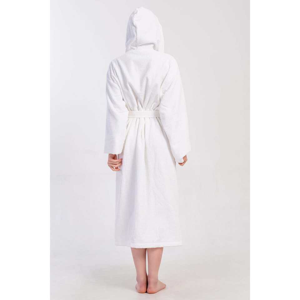Albornoz con capucha de felpa blanca para mujer, manga larga, suave, para spa, largo completo, con cinturón y bolsillos