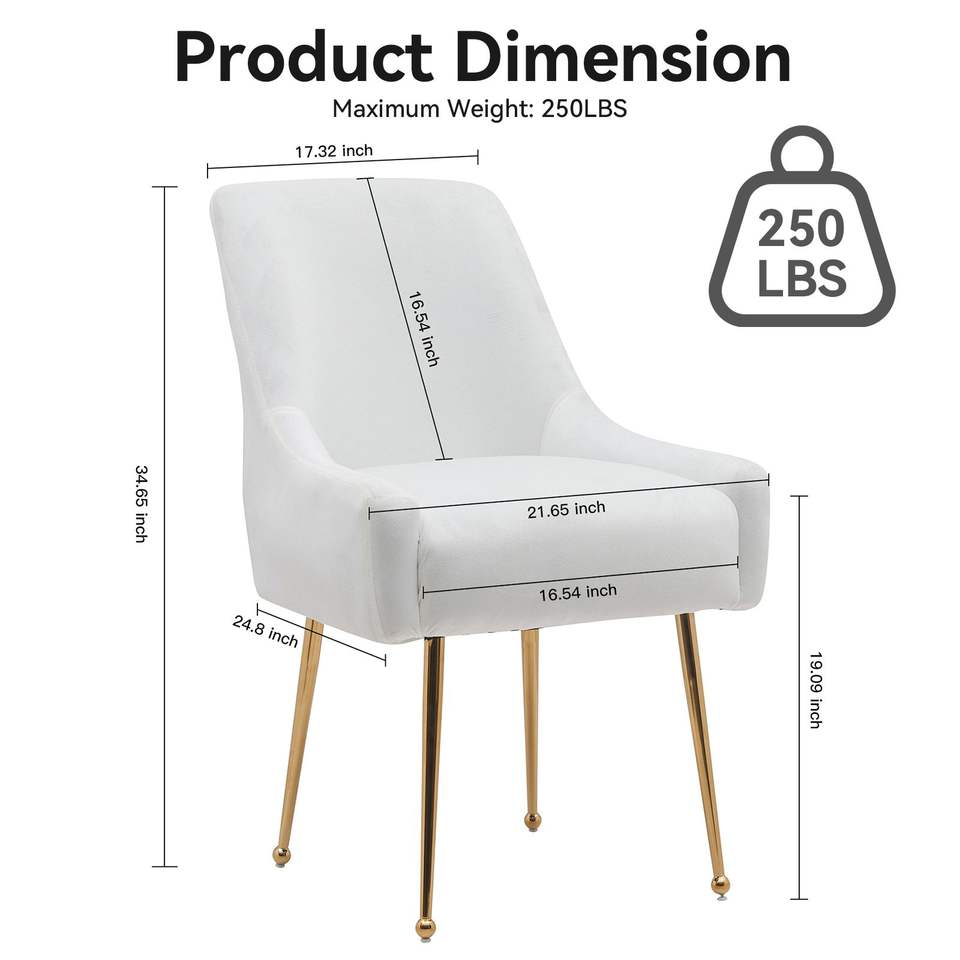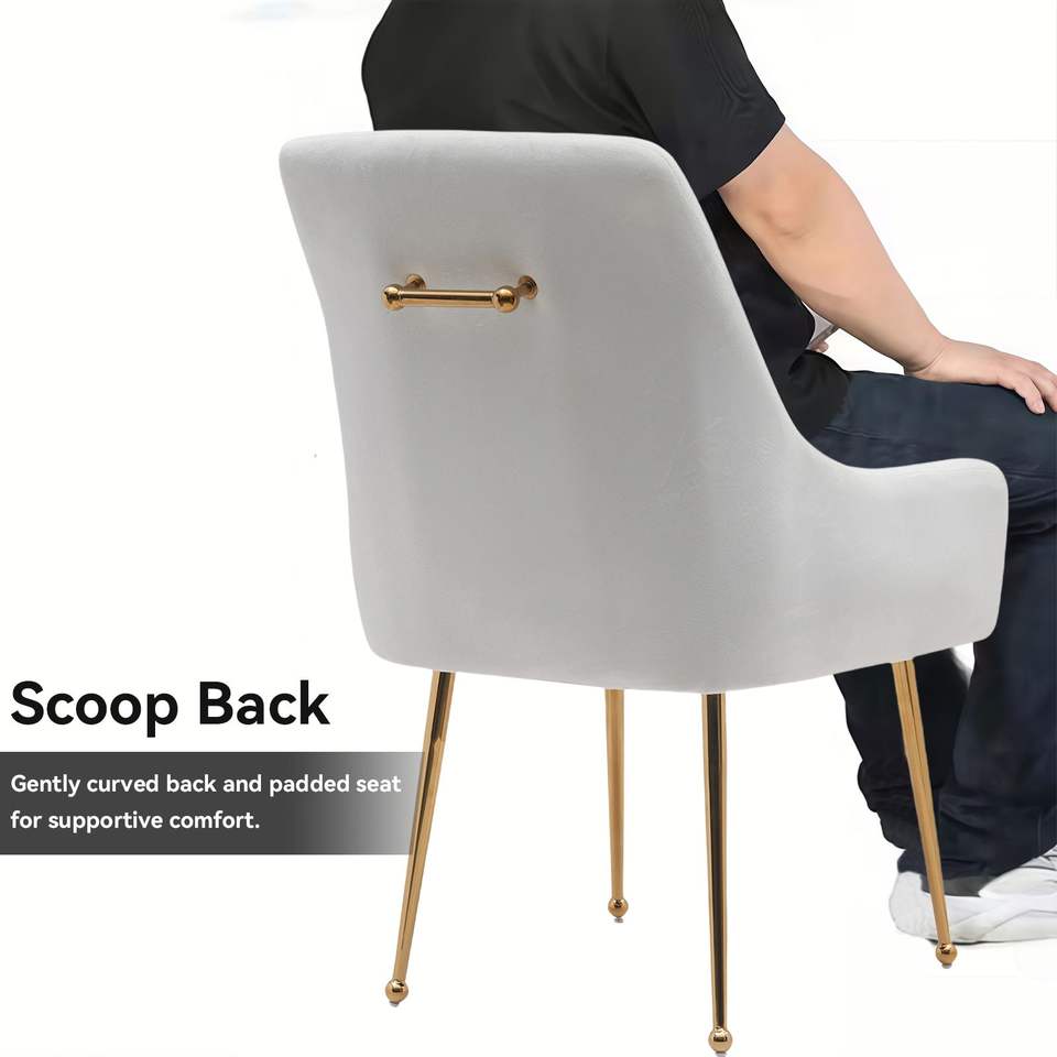 Juego de 2 Sillas de Comedor de Terciopelo Blanco con Patas Doradas, Tirador y Patas Ajustables