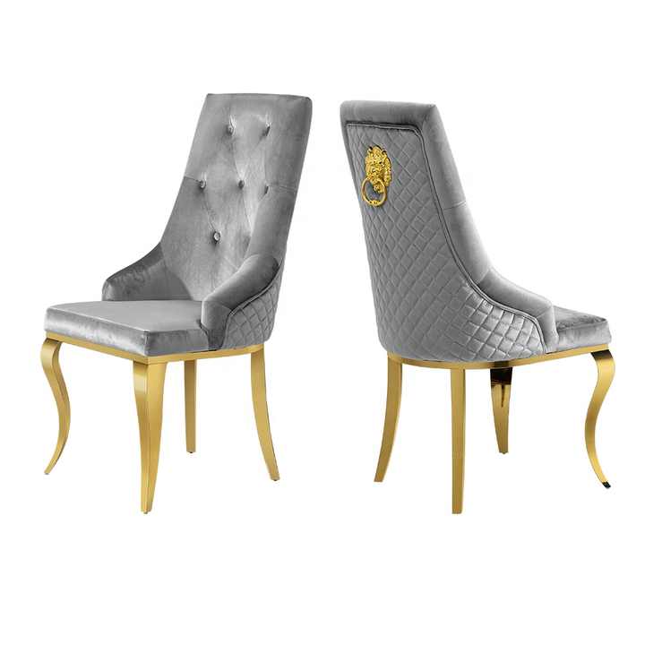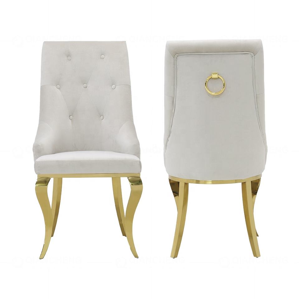 Detalles del embalaje:Sillas de comedor de terciopelo blanco, silla de comedor moderna de lujo, pata de oro real, de lujo, aldaba de León