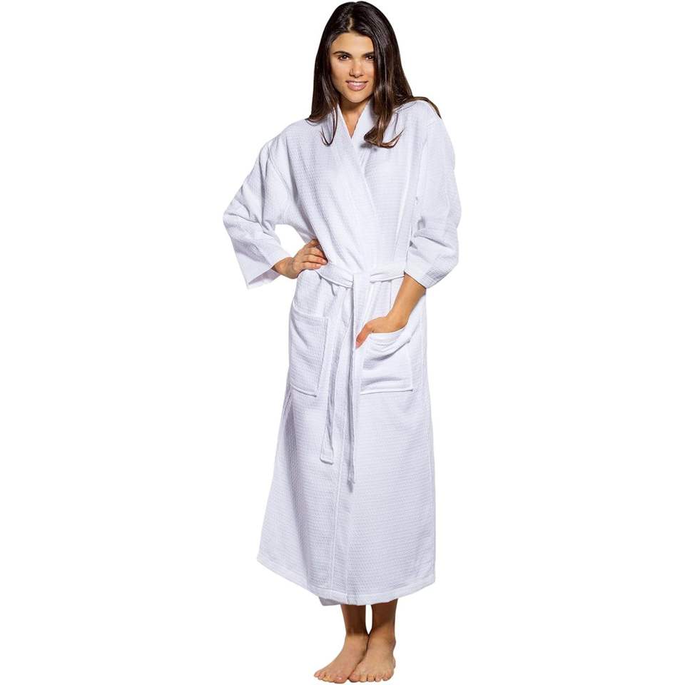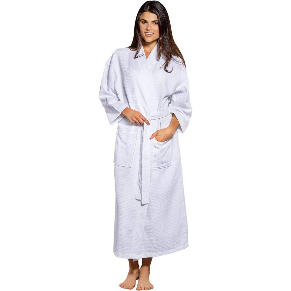 Bata de Baño Kimono Blanca Tipo Waffle Unisex, Larga, Holgada, con Cuello en V, de Algodón, Personalizable para Mujer