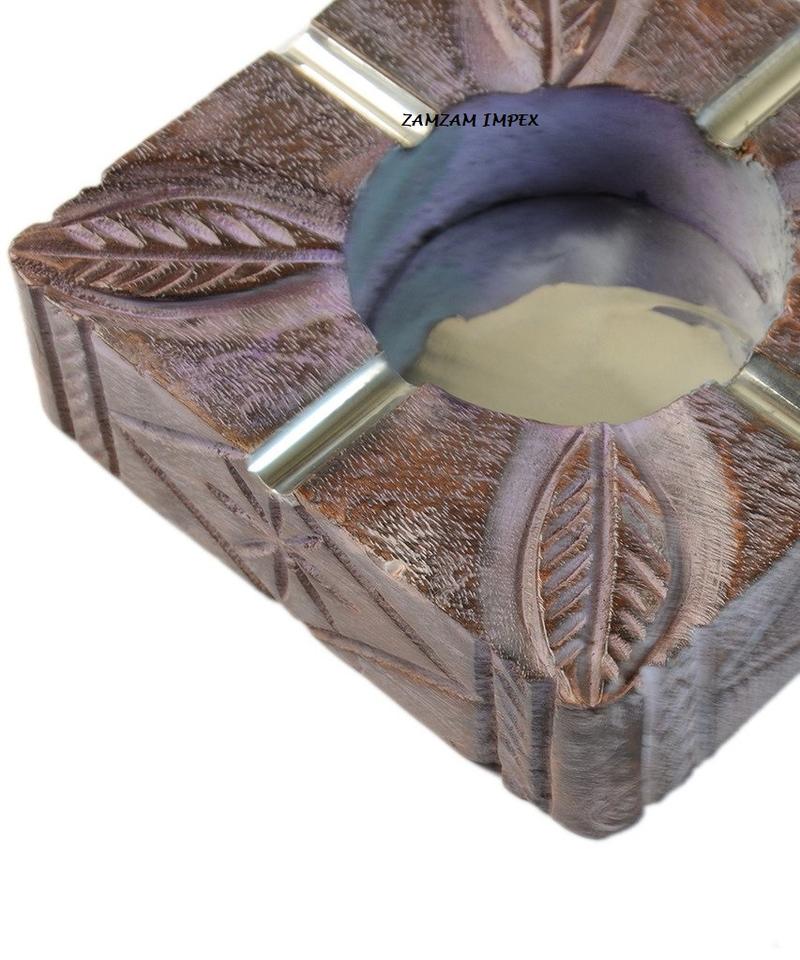 Cenicero cuadrado de madera de mango lavado blanco Diseño de bolsillo tallado a mano Estilo rústico de Europa/América del Norte Uso en el patio del hogar Acabado natural