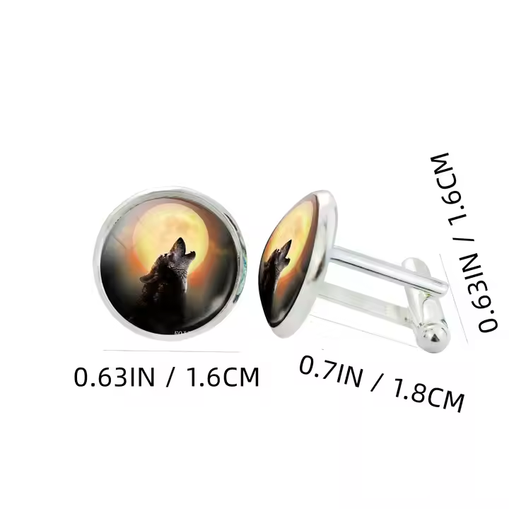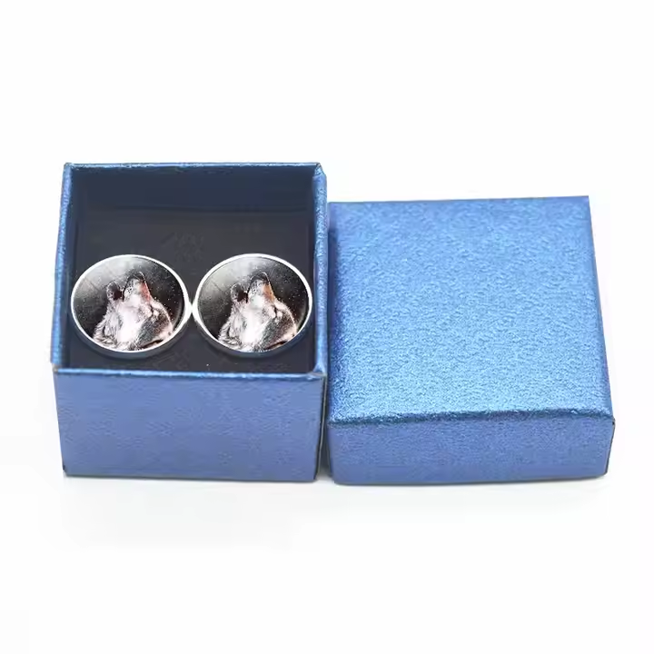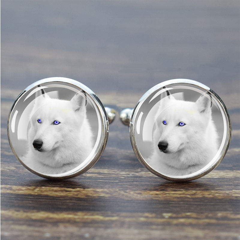 Gemelos estampados de Lobo Blanco, accesorios de camisa francesa, gemelos de Metal con diseño original de Color plateado para hombres