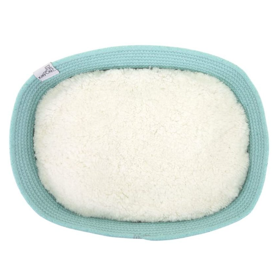 Cesta para mascotas de cuerda de algodón blanco y azul Cama Ovalada para gatos con cojín con patrón de animales acolchado