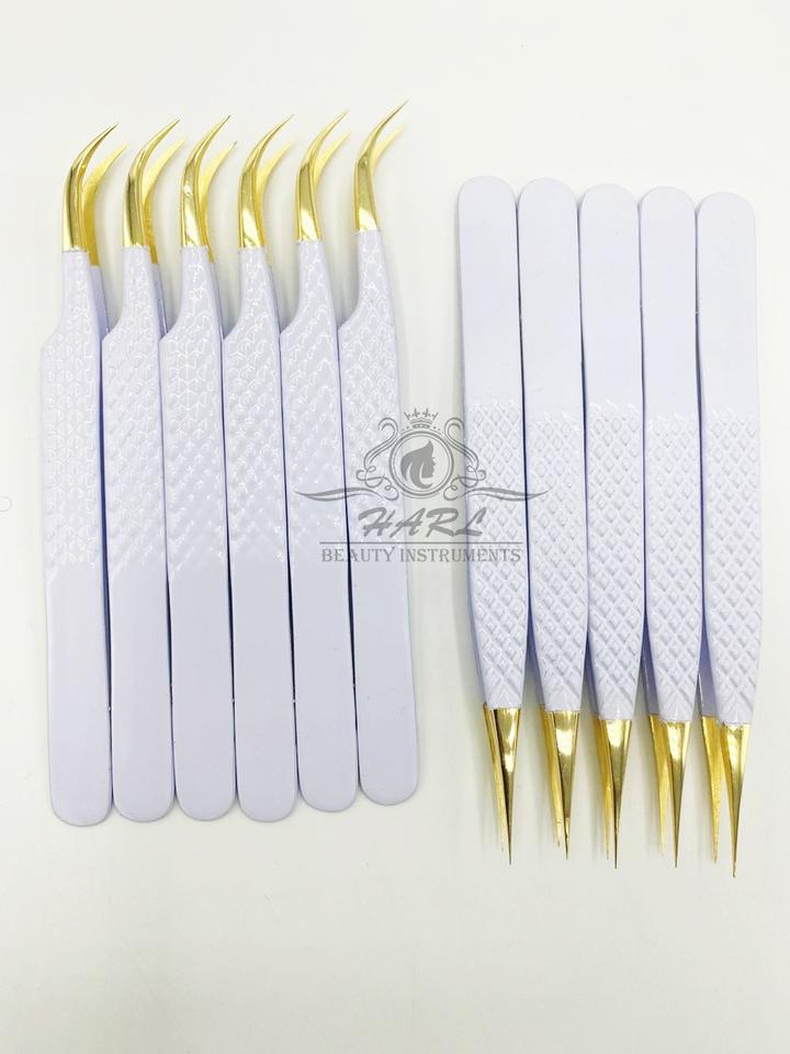 Pinzas para pestañas de color blanco y dorado con agarre fuerte Pinzas para extensión de pestañas Pinzas para pestañas postizas personalizadas