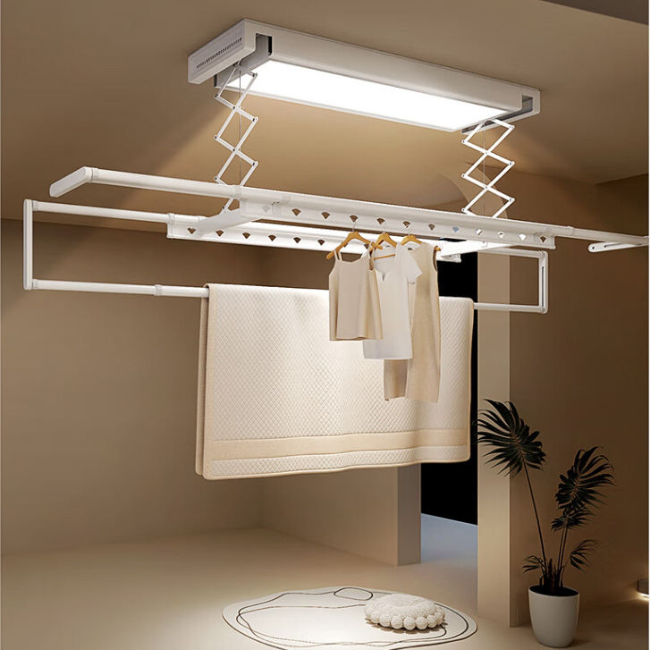 Tendedero Plegable Inteligente para Ropa con Luz Completa y Luz Parcial, Colgador de Tijera Única, Cuatro Ventiladores, Secado con Viento Frío y Caliente