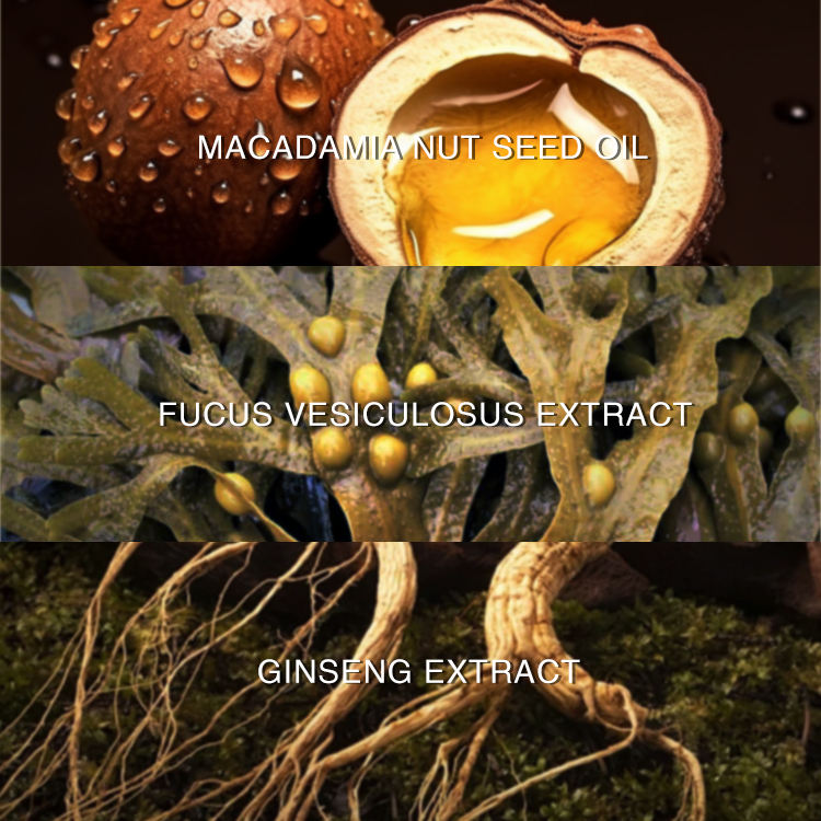 Ingrediente:Aceite de semilla de nuez de macadamia, extracto de Fucus, extracto de ginseng