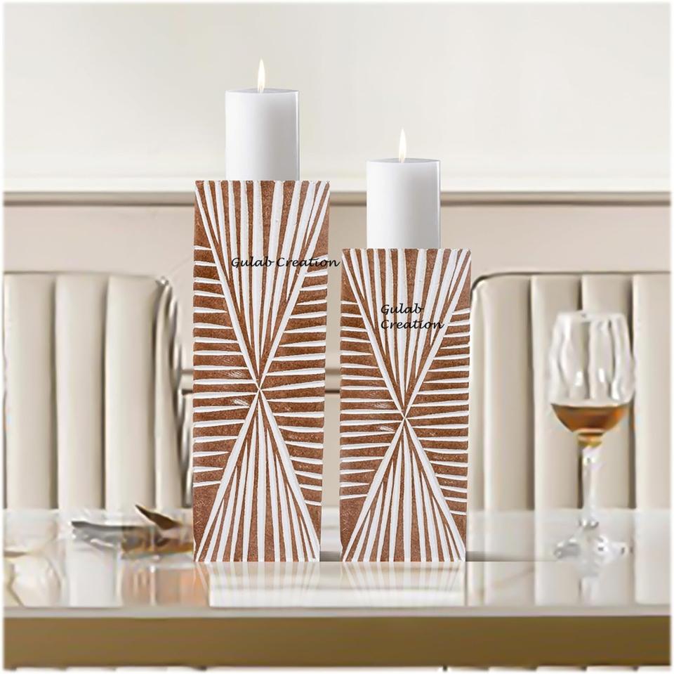 Portavelas de Pascua Ecológico de Madera de Mango Pura Blanqueada, Tallado a Mano, Rústico, Cuadrado, Centro de Mesa Decorativo