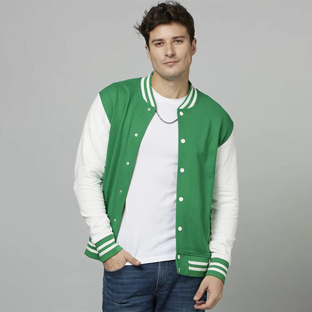 Venta al por mayor logotipo personalizado de lana Varsity Vintage en blanco chaquetas de manga de cuero para los hombres