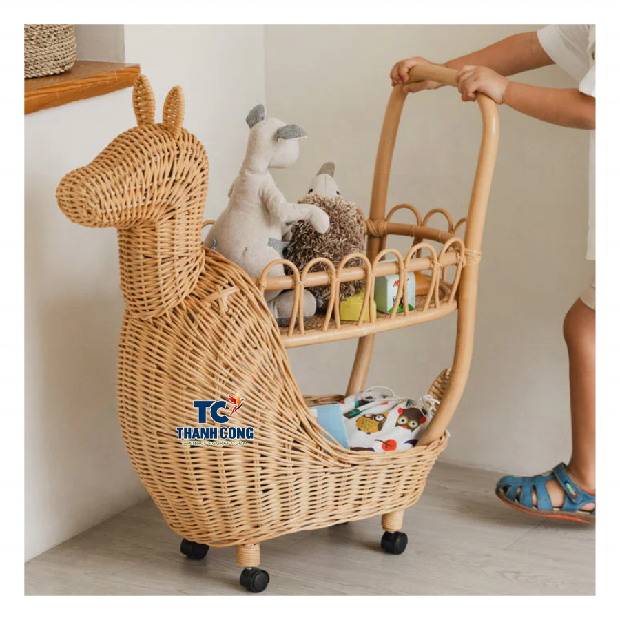 Venta al por mayor de juguetes de ratán y carrito de juguetes de ratán, ideal para tiendas sostenibles y juegos de regalo ecológicos