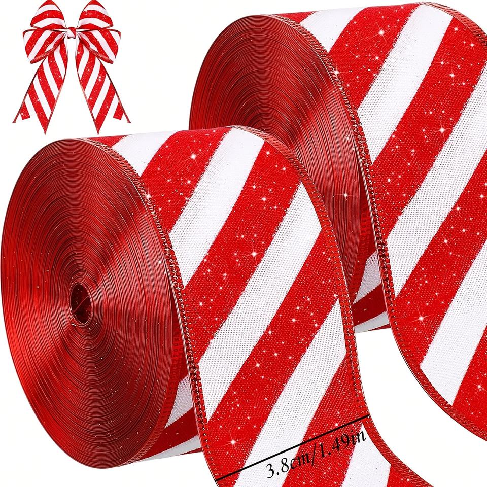 Cinta de Grosgrain a Rayas Rojas y Blancas de 1.5 Pulgadas, Personalizada, de una Sola Cara, para Decoraciones Navideñas, al por Mayor