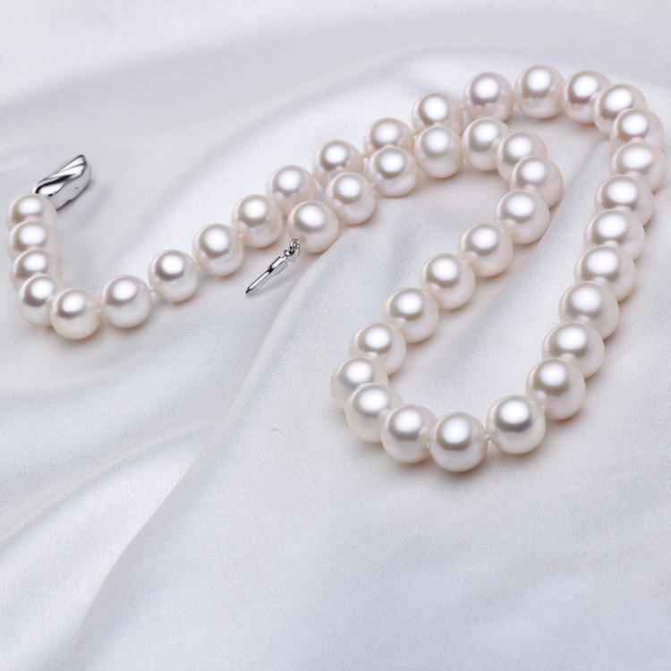 Collar de Perlas de Agua Dulce Casi Redondas de 10-11 mm al por Mayor, Zhuji, Luz Intensa con Ligeras Imperfecciones