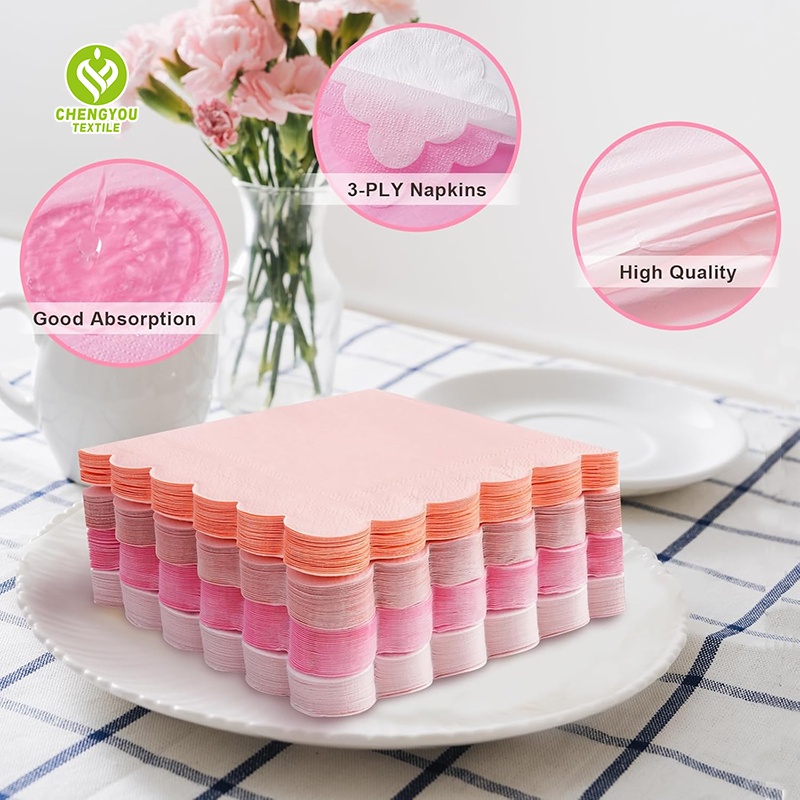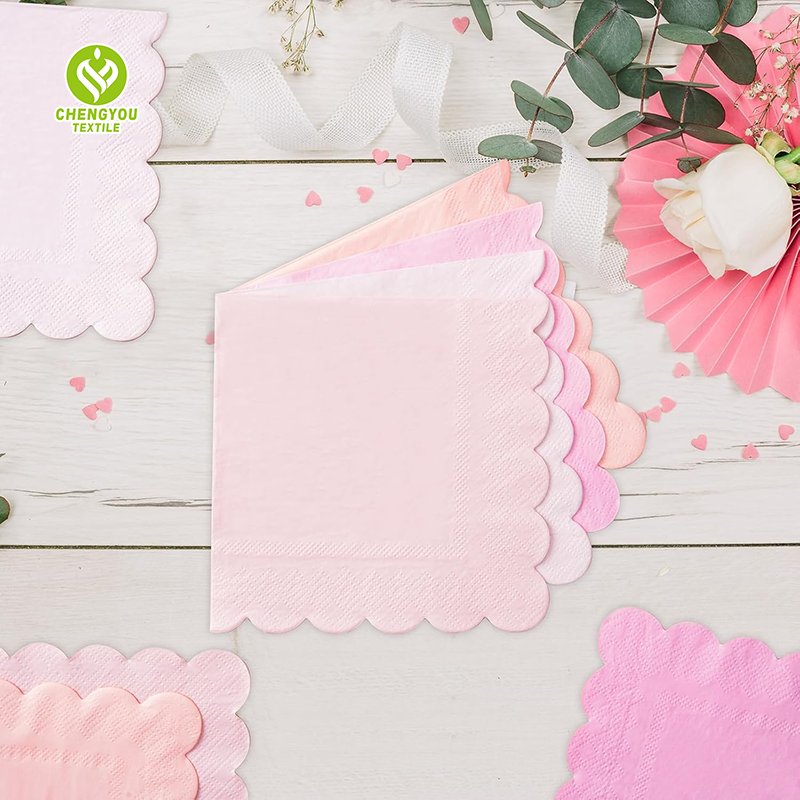 Venta al por mayor de Servilletas y manteles individuales elegantes con borde festoneado de lino 100%, accesorios de tela bordados