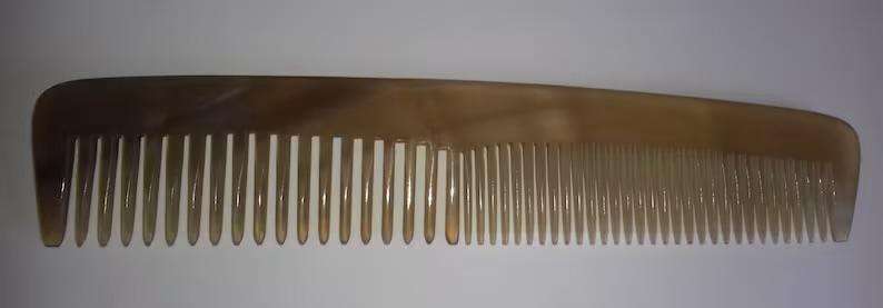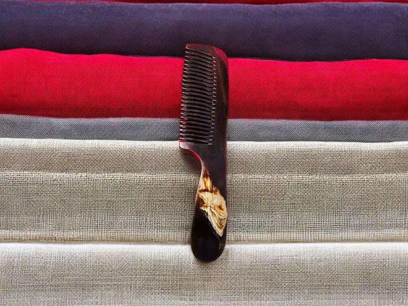 Peine de cuerno de búfalo natural 100% al por mayor peine de masaje de pelo Antiestático de dientes finos con mango redondo grueso para salones