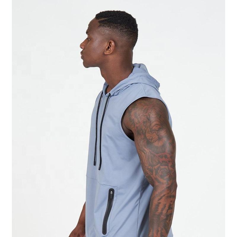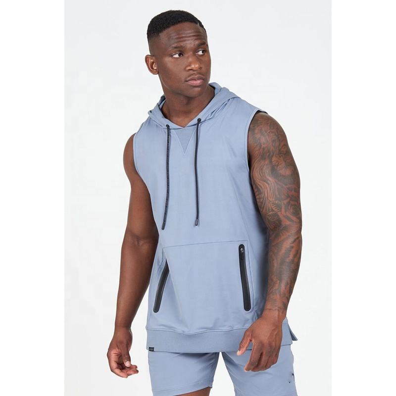 Sudaderas con Capucha para Hombre al por Mayor, 100% Poliéster, Camisetas sin Mangas Personalizadas para Gimnasio, con Bolsillo Lateral con Cremallera, Diseño Liso y Moderno, Primavera
