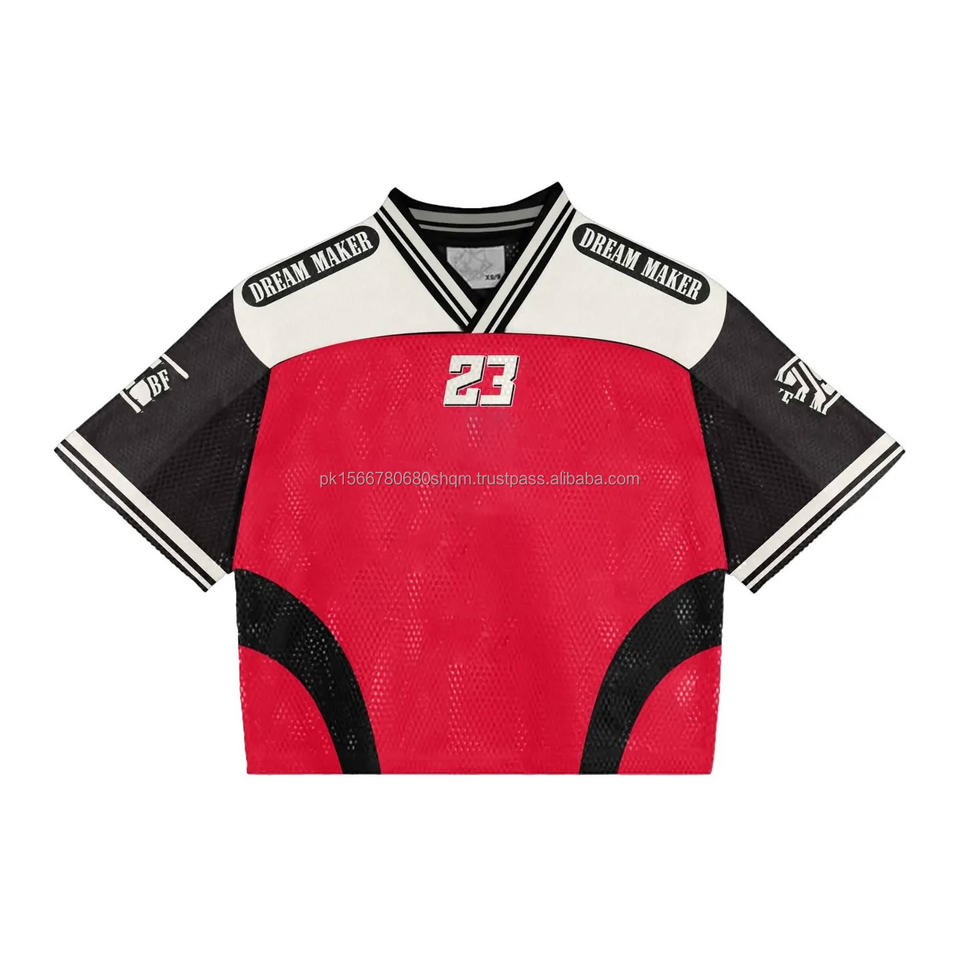 Venta al por mayor 100% poliéster sublimado recortado retro fútbol Jersey Streetwear Oversized American Mesh moda fútbol Jersey
