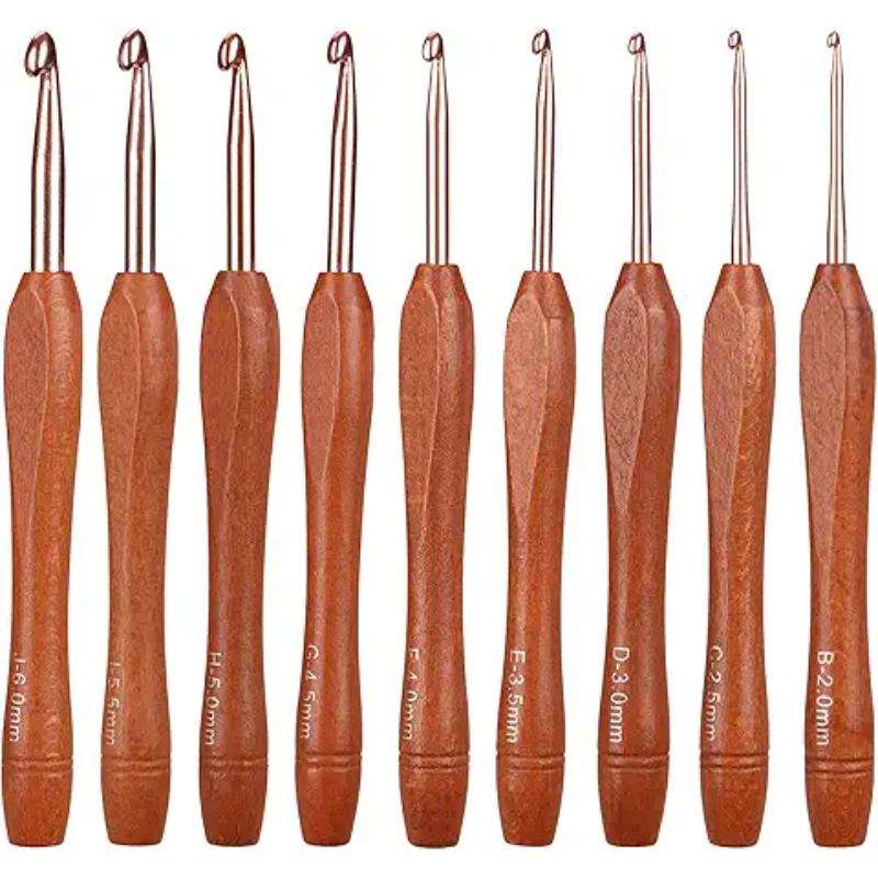 Venta al por mayor 12 tamaños surtidos agujas de tejer de bambú carbonizado juego de ganchos de ganchillo de madera gancho de ganchillo de bambú de 3-10mm